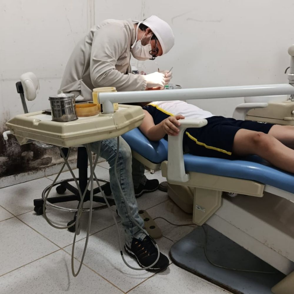 Ambiente: Consultório Odontológico (2 equipes) – Compressor Odontológico (1), Mesa de Escritório (1), Cadeira Odontológica Completa (1), Consultório Odontológico Portátil (1), Autoclave Horizontal (1), Fotopolimerizador de Resinas (1), Mocho (1), Ar Condicionado (1), Cadeira (1), Armário (1)