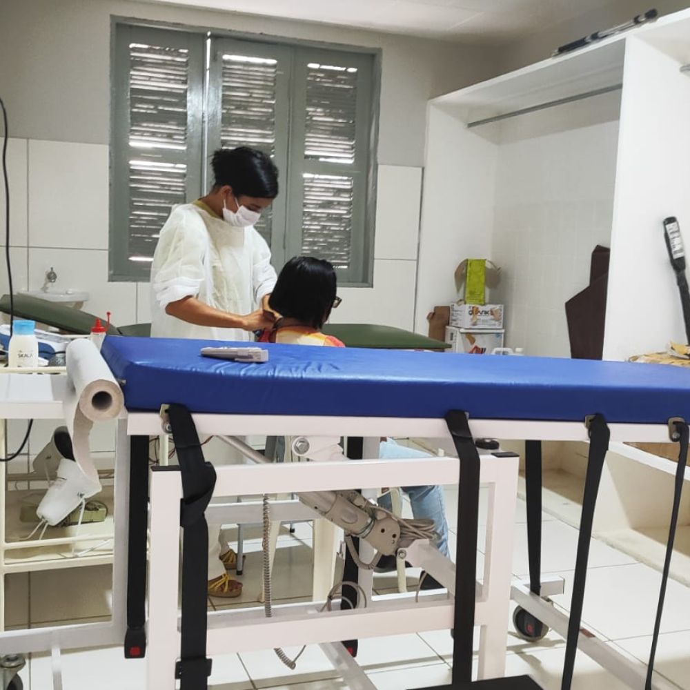 OBJETO DO RECURSO: Escada Digital em Madeira para Reabilitação (Aplicação: Membros Superiores – Ombros e Dedos), Rampa com Degraus (Material de confecção: Madeira/Similar, Degraus: 04), Cama Elástica Proprioceptiva, Escada com 3 Degraus, Exercitador de Pés e Tornozelo (Base construída em madeira ou propileno e piso antiderrapante com apoio para calcâneo, Especificar: Sim), Manovacuômetro (Tipo: Analógico), FES (Número de Canais: 04), Tábua de Quadríceps, Estimulador Transcutâneo (Número de Canais: 02), Ultrassom para Fisioterapia (Frequência: 1 e 3 MHz, Tela LCD: Possui, Modo de emissão/operação: Contínuo e Pulsado), TENS e FES (Número de Canais: 04), Banho de Parafina, Simetrógrafo (Portátil, estrutura em alumínio anodizado ou similar, dobrável, com dispositivo para nivelamento dos pés, Dimensões mínimas aberto: 2x1 m, Dimensões mínimas fechado: 1x1 m, Especificar: Sim), Barras Paralelas para Fisioterapia, Andador (3), Aparelho de Luz Infravermelho (2), Aparelho Nebulizador (2), Escada 2 Degraus (3), Esfigmomanômetro Adulto (4), Esfigmomanômetro Infantil (3), Espaldar (Barra de Ling) (1), Exercitador de Mãos e Dedos (7), Oxímetro de Pulso (Tipo: Portátil, de mão, com 1 sensor), Esfigmomanômetro Obeso (2), Estetoscópio Adulto (2), Estetoscópio Infantil (2), Martelo de Reflexo (4), Negatoscópio (2), Mesa Ortostática.