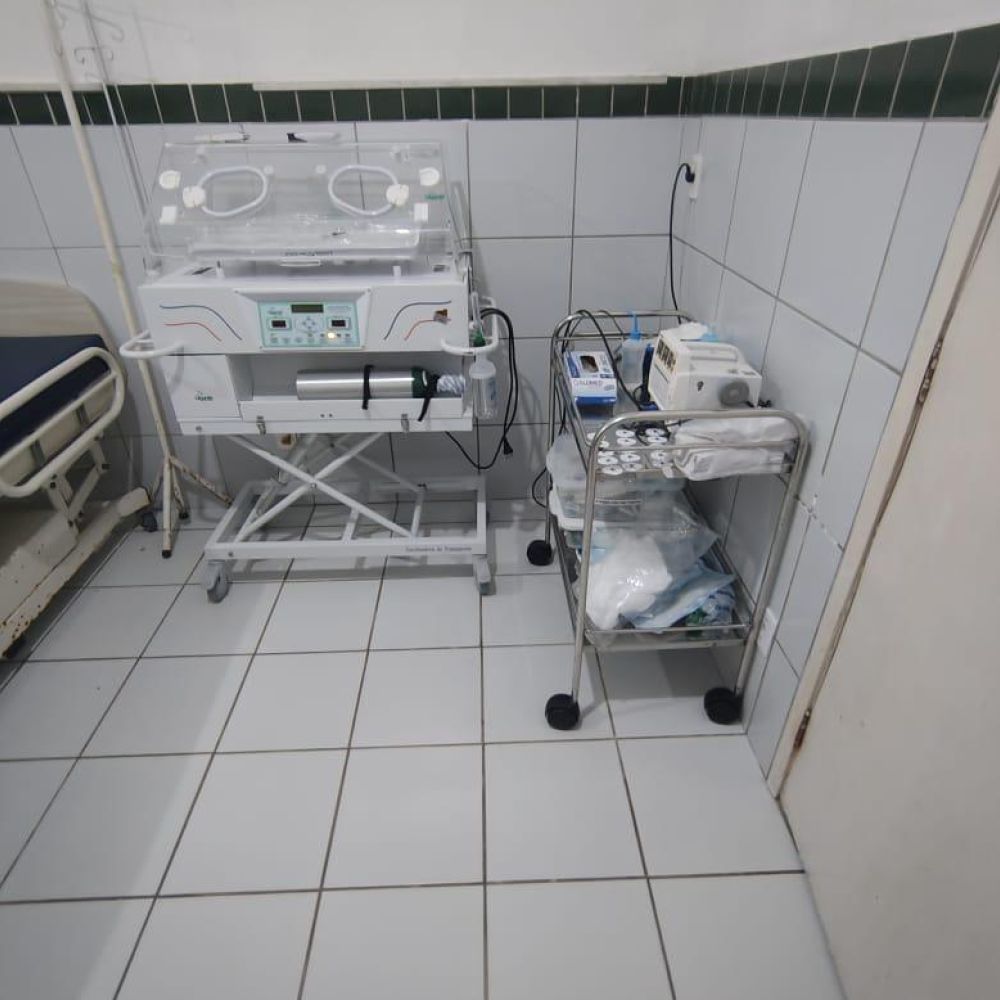 Sala de Parto e Reanimação do Recém-Nascido: Reanimador Pulmonar Manual Adulto (1), Reanimador Pulmonar Manual Pediátrico (2), Oxímetro de Pulso (2), Incubadora de Transporte Neonatal (1), Mesa de Mayo (2), Carro de Emergência (1), Negatoscópio (1), Aspirador de Secreções Elétrico Móvel (2), Balança Antropométrica Infantil (1)