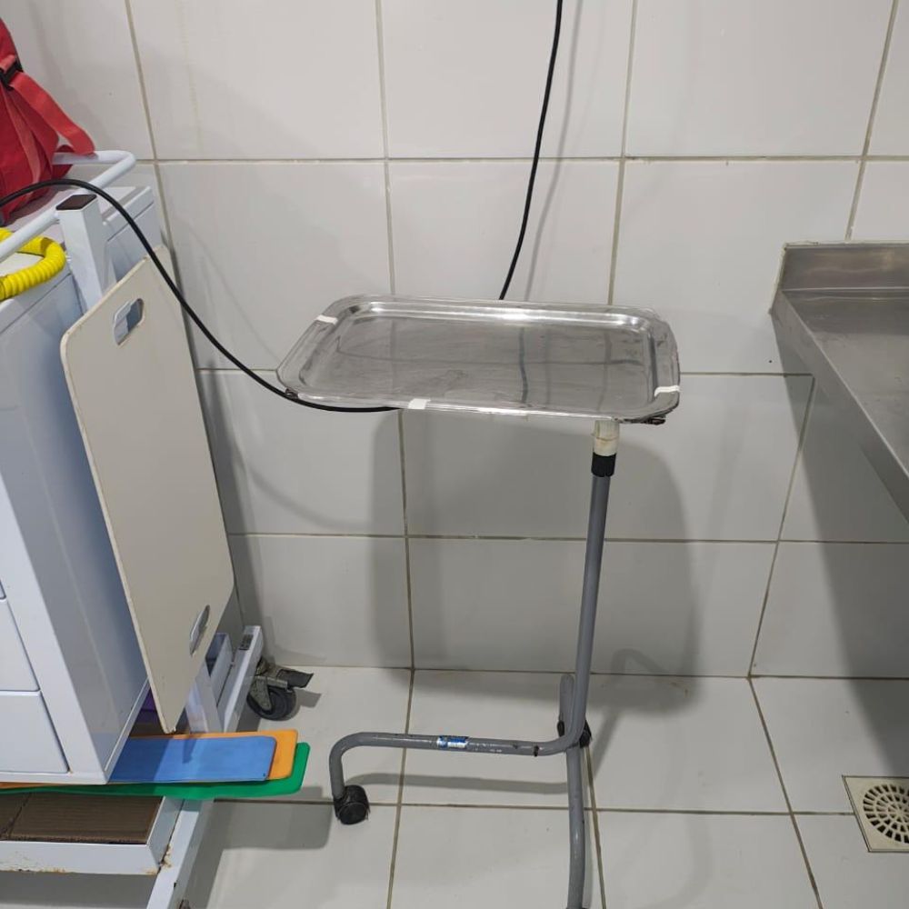 Sala de Pré-Parto: Suporte de Soro (2), Escada com 2 degraus (2), Espaldar em Madeira (1), Foco Refletor Ambulatorial (1), Carro de Curativos (1), Amnioscópio (1), Detector Fetal (3)