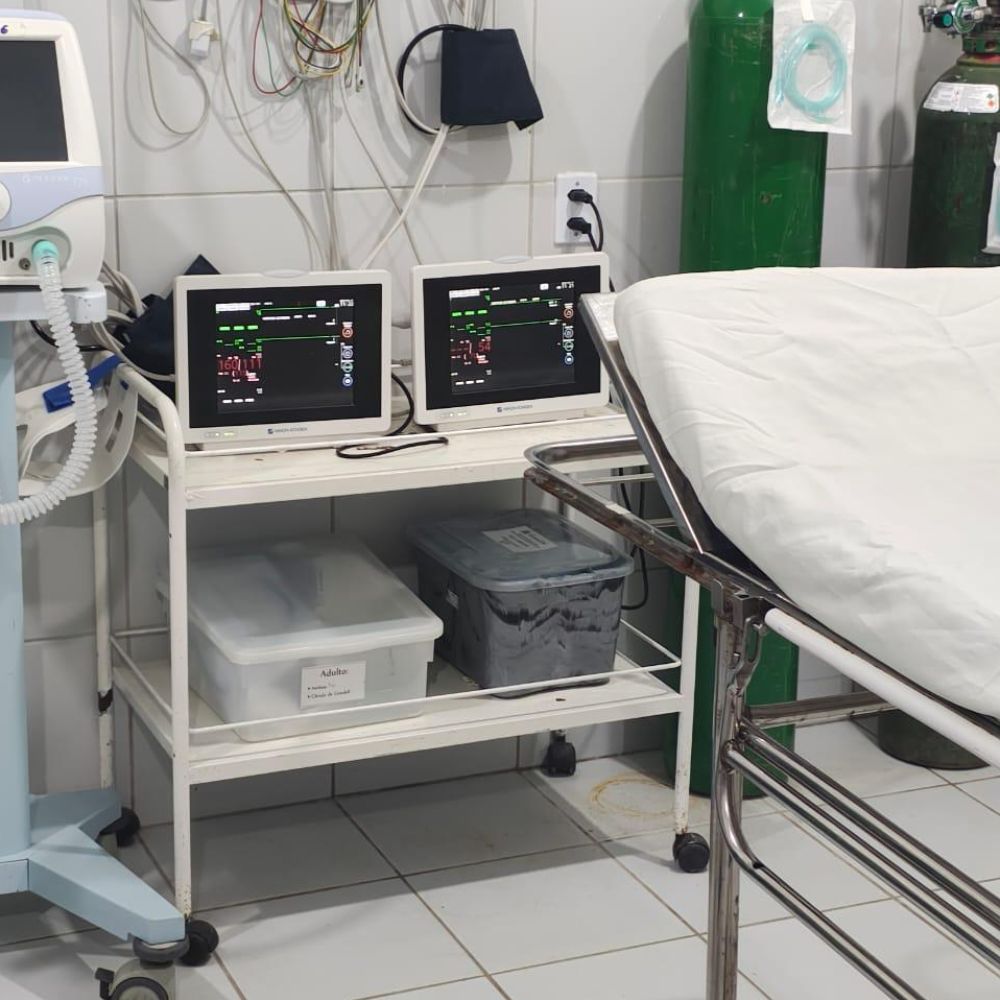 Sala de Emergências (Politraumatismo, Parada Cardíaca, etc.): Prancha Longa de Imobilização de Coluna (2), DEA - Desfibrilador Externo Automático (1), Reanimador Pulmonar Manual Adulto (1), Cardioversor (1), Laringoscópio Infantil (2), Eletrocardiógrafo (1), Reanimador Pulmonar Manual Pediátrico (1)