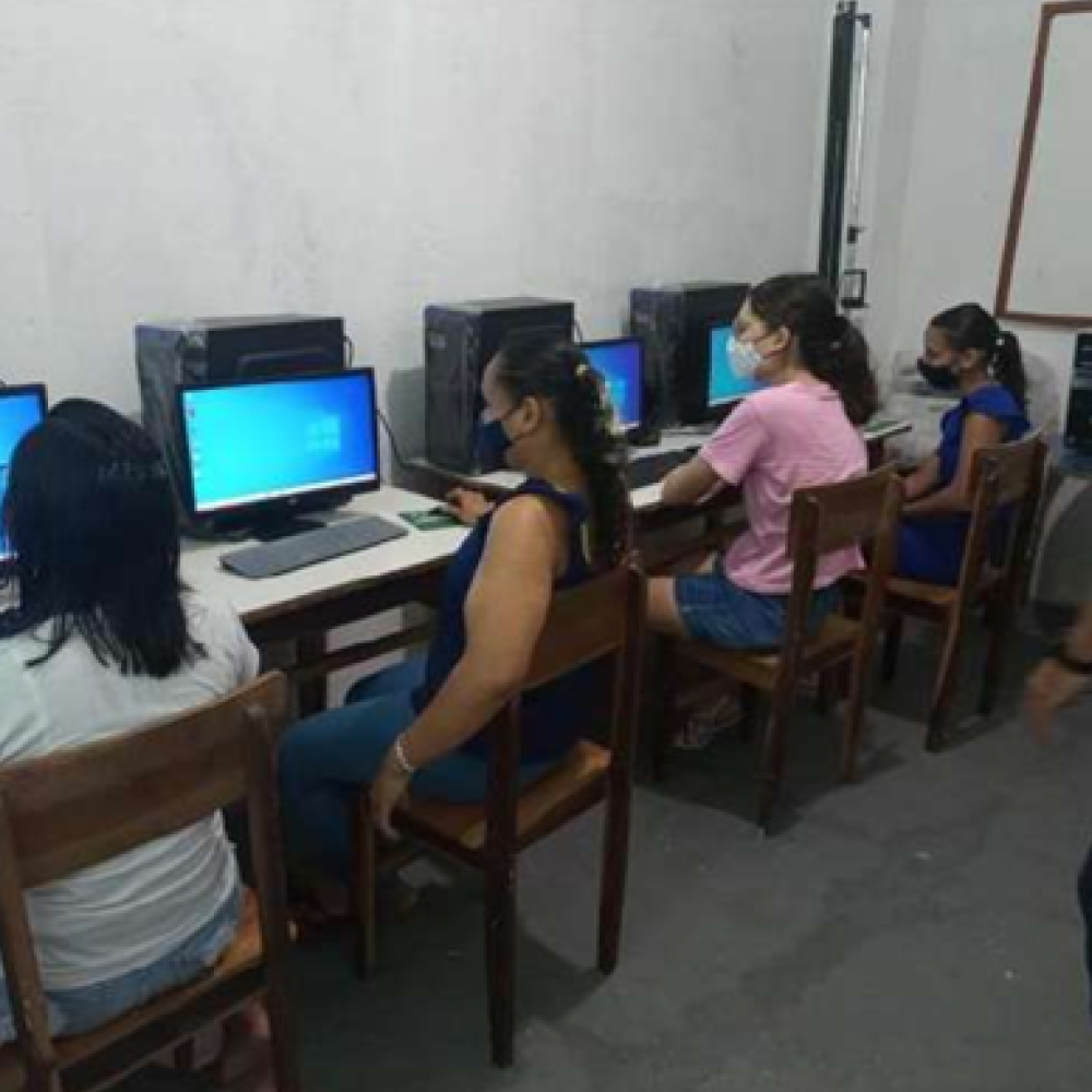 Capacitação e qualificação profissional na área de Tecnologia da Informação, com cursos de inclusão digital (informática básica e avançada), além de cursos profissionalizantes nas áreas de manicure, artesanato em crochê e bordados, e fotografia.