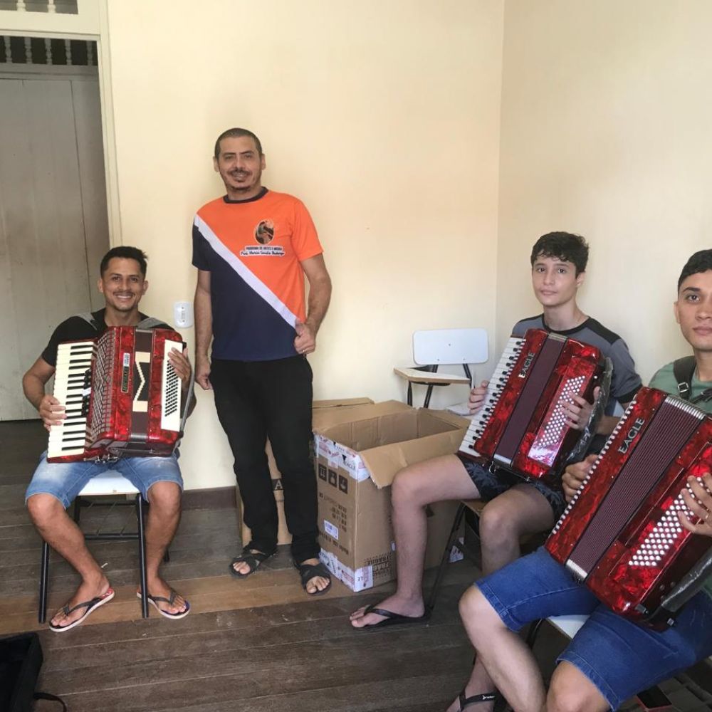 OBJETO DO RECURSO: Aquisição de instrumentos musicais para a Escola de Música e Artes do Município: Máquina de chimbal cromada para bateria – estante com construção Dual-Tube, acionamento por corrente e ajuste de tensão, ferragem cromada, ajuste de tensão variável (1), Sanfona elétrica (acordeon gaita 80 baixos; 3 vozes; 9 registros; 37 teclas; acabamento refinado; palheta em aço inoxidável; estrutura de madeira nobre; fole com revestimento em linho e couro; cantoneiras externas em metal, com alça) (1), Bateria acústica completa (com surdo, bumbo, máquina de chimbal etc.) (2), Bombardino Sib (2), Bombo (1), Caixa Clara (2), Carrilhão (1), Clarinete Sib (3), Contrabaixo Elétrico 4 Cordas (3), Flauta Doce (11), Guitarra Elétrica (5), Par de Pratos (Marching Band) (2), Trompete (3), Sanfona elétrica (acordeon 80 baixos) (2), Sax Alto Mib (3), Sax Tenor Sib (3), Teclado Musical (caixa compacta) (3), Triângulo Musical (1), Trombone de Vara (3), Violão Eletroacústico Clássico (8).
