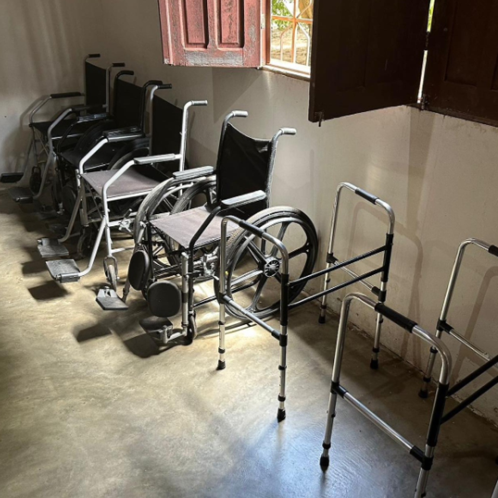 Cadeira de Rodas – S1 Centro Ottobock (1), Suporte para Medicação com Rodízios (1), Armário Vitrine com 2 Portas (1), Escada Luxo em Inox com 2 Degraus Antiderrapante (1), Fluxômetro 0–15 LPM Ar Comprimido (1), Cama Hospitalar Manual Duas Manivelas (2), Mesa para Refeição Hospitalar (4), Oxímetro Portátil de Dedo com Visor LED – Rosa (4), Mesa para Escritório com 2 Gavetas (1), Massageador Elétrico Profissional – Deep Therapy (4), Infraterm com Pedestal e Dimer – 220V (1), Ventilador de Coluna Mallory Neo Air 15 Timer – 3 Velocidades (10), Geladeira/Refrigerador Frost Free – 310 L (1), Armário Multiuso com 2 Portas e 5 Prateleiras (2), Liquidificador Industrial Alta Rotação 4L – Inox (1), Cadeira de Escritório Secretária Giratória – Preta (1), Notebook Intel Core i5, 8GB, SSD 256GB, LCD 15.6", Windows 10 (1), Cama Box Solteirão com Colchão de Molas Ensacadas e Espuma (6), Grade de Proteção para Cama (6), Mesa Quadrada – Tramontina Tambaú (4), Cadeira com Braços – Atalaia Branca Tramontina (16), Bebedouro de Mesa Branco 220V (1).