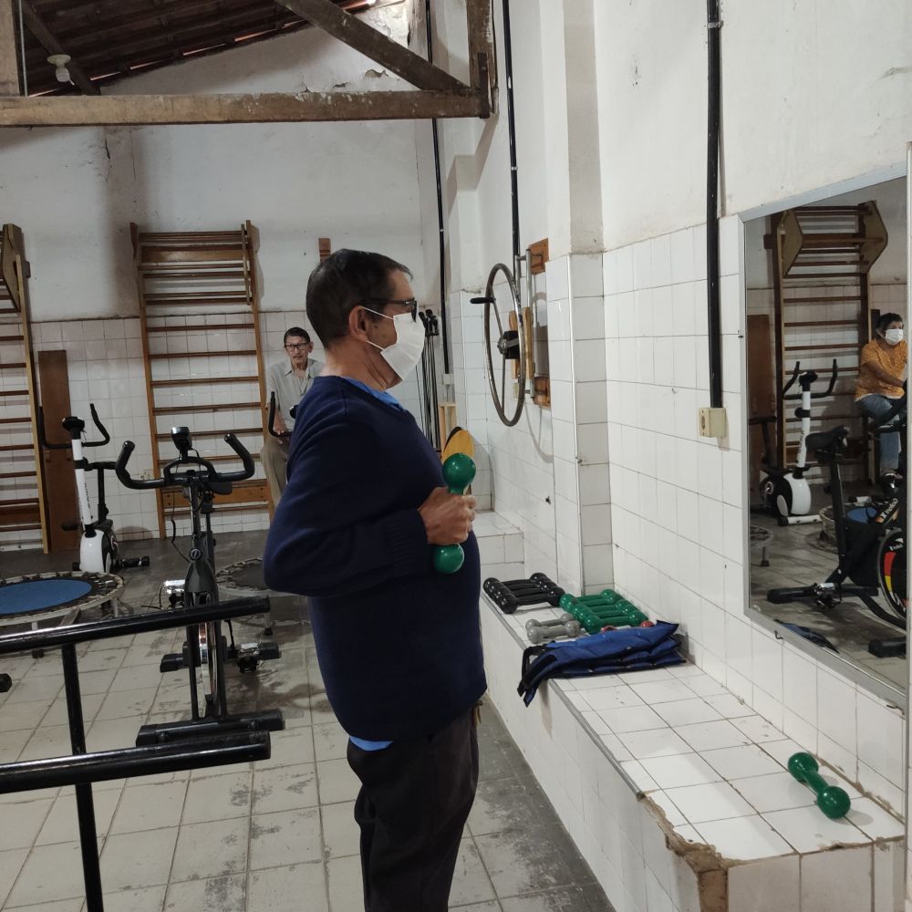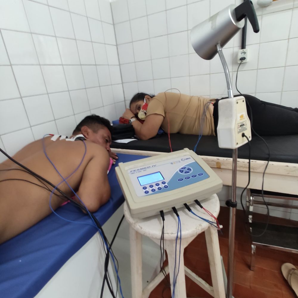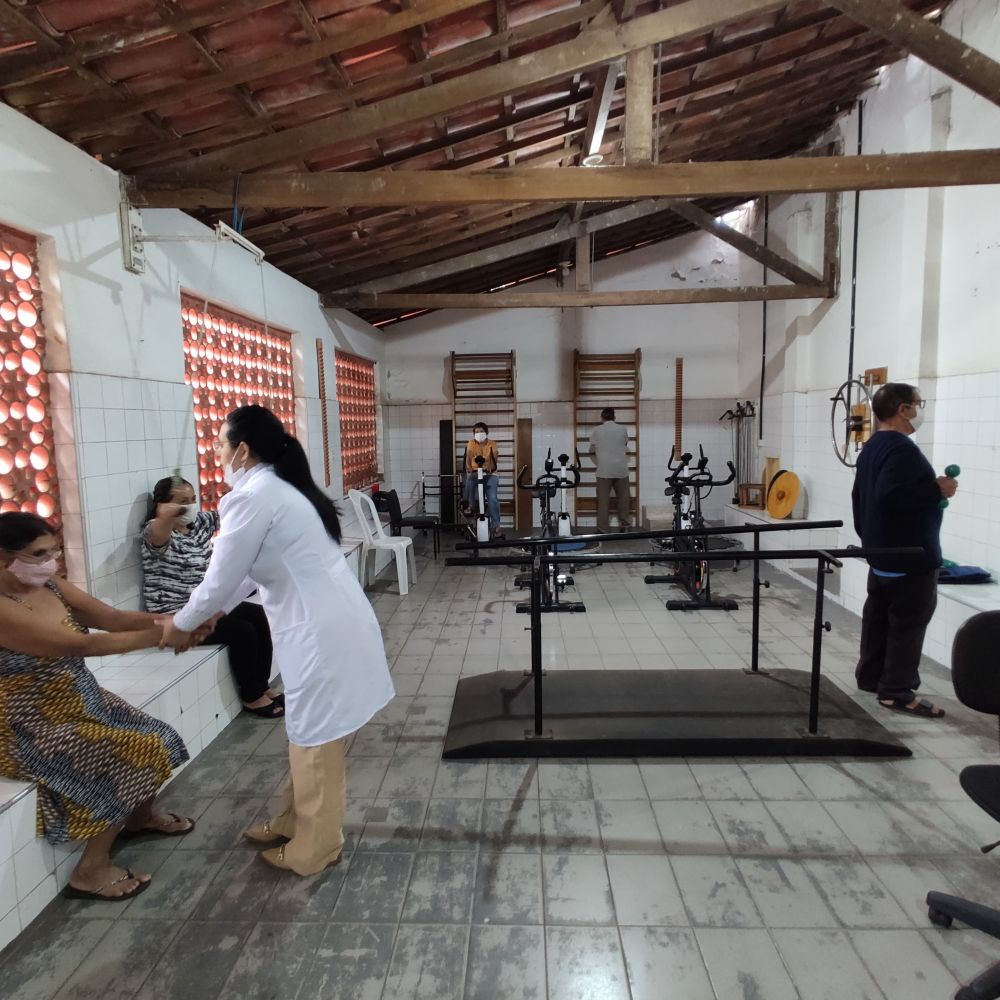 Ginásio: Cadeira, Ventilador de Teto/Parede, Tablet, Escada Linear para Marcha, Televisor, Cadeira de Rodas Pediátrica, Escada Digital em Madeira para Reabilitação, Geladeira/Refrigerador, Mesa para Consultório, Mesa Auxiliar, Bicicleta Ergométrica Vertical, Cicloergômetro, Gangorra de Equilíbrio, TENS e FES, Biombo, Tablado para Fisioterapia, Mesa Ortostática, Bebedouro/Purificador Refrigerado.